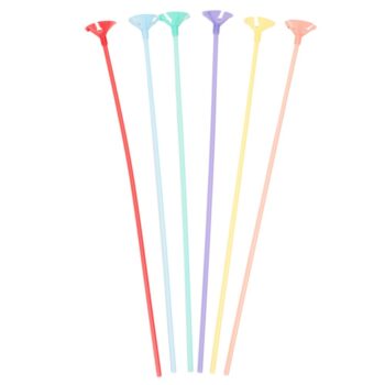 Adaugă o notă vibrantă și veselă oricărei petreceri cu acest set de bețe și rozete multicolore, special create pentru susținerea baloanelor umflate cu aer. Sunt soluția practică și economică pentru a crea decoruri pline de viață sau pentru a oferi baloane cadou celor mici, eliminând nevoia heliului și aducând un plus de culoare aranjamentului.