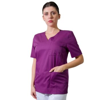 Bluza medicala unisex VED Clasic este perfecta pentru toamna, oferind un design casual ideal pentru profesionistii din industria medicala, cosmetica si alimentara. Cu maneci scurte si un total de trei buzunare (doua laterale si unul la piept cu suport pentru instrument de scris), aceasta bluza practica este confectionata din tercot de inalta calitate (35% bumbac, 65% poliester), asigurand rezistenta la spalari multiple si permitand pielii sa respire.nDetalii Design:n• Guler in forma de „V” pentru un aspect profesional.n• Cusatura orizontala in zona bustului pentru o asezare eleganta.n• Doua crapaturi laterale ce ofera libertate de miscare, esentiala pentru activitatea zilnica.nCuloare: mov.nMarimi Disponibile:nOferim o gama variata de marimi, astfel incat sa gasesti bluza perfecta pentru tine:n• XS (34-36): Umeri 39 cm, Bust 92 cm, Talie 92 cm, Lungime 68 cm, Lungime Maneca 24 cmn• S (38-40): Umeri 41 cm, Bust 100 cm, Talie 100 cm, Lungime 70 cm, Lungime Maneca 24.7 cmn• M (42-44): Umeri 43 cm, Bust 108 cm, Talie 108 cm, Lungime 72 cm, Lungime Maneca 25.5 cmn• L (46-48): Umeri 45 cm, Bust 116 cm, Talie 116 cm, Lungime 74 cm, Lungime Maneca 26.2 cmn• XL (50-52): Umeri 47 cm, Bust 124 cm, Talie 124 cm, Lungime 76 cm, Lungime Maneca 27 cmn• 2XL (54-56): Umeri 49 cm, Bust 132 cm, Talie 132 cm, Lungime 78 cm, Lungime Maneca 27.7 cmn• 3XL (58-60): Umeri 51 cm, Bust 140 cm, Talie 140 cm, Lungime 80 cm, Lungime Maneca 28.5 cmnUtilizare:nUniformele PRIMA sunt ideale pentru diverse industrii, inclusiv medicala (medici, asistente, fizioterapeuti, farmacisti), cosmetica si infrumusetare (clinici de infrumusetare, spa si wellness), precum si industria alimentara. Indiferent de sezon, uniformele PRIMA ofera confortul si durabilitatea necesare pentru a-ti indeplini indatoririle zilnice in cele mai bune conditii.nCumpara acum Bluza Unisex VED Clasic si bucura-te de confortul si functionalitatea unei uniforme profesionale de inalta calitate!nnnNota:nMasuratorile sunt ale produsului, NU reprezinta masuratori corporale!nIn cazul in care marimea dumneavoastra se incadreaza intre 2 valori, va recomandam sa alegeti marimea mai mare!nVa informam ca pot exista diferente de cca 1-2 cm dintre valorile standard din tabelul de marimi si cele ale produslui fizic datorita faptului ca sunt lucrate manual!nnInstructiuni de masurare:n1 – Latime umerinAvand bratele pe langa corp, se masoara distanta intre umeri, plasand centimetrul orizontal pe spate, deasupra omoplatilor.n2 – Circumferinta bustnSe masoara deasupra celei mai proeminente parti ale bustului.n3 – Circumferinta talienSe masoara circumferinta in cea mai ingusta parte a taliei (intre partea inferioara a coastelor si buric).n4 – Lungime spatenSe masoara pe spate de la ceafa pana la sold.n5 – Lungime manecanSe masoara de la umar pana la marginea manecii.n6 – Circumferinta talie intinsanSe masoara circumferinta taliei sub partea cea mai joasa a abdomenului. Marimile din tabel reprezinta circumferinta produsului cu elasticul intins.n7 – Circumferinta soldnSe masoara circumferinta in cea mai lata parte a soldurilor (cea mai proeminenta parte a muschilor fesieri).n8 – Lungime produsnSe masoara din talie pana la talpi.n9 – Lungime interioaranSe masoara de la tur pana la glezna.n10 – Circumferinta terminatie produsnNu se masoara – se afiseaza in tabel dimensiunea produsului.