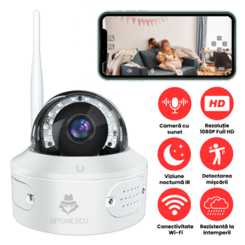 Aceasta camera de supraveghere WiFi reprezinta solutia ideala pentru cei care isi doresc siguranta, control si claritate in orice moment al zilei. Datorita designului sau modern si rezistentei sale la conditii meteo extreme, poate fi instalata atat in interior, cat si in exterior, oferind imagini de inalta calitate si functii inteligente de monitorizare. Cu o rezolutie Full HD 1080P, viziune nocturna IR si sistem audio bidirectional, aceasta camera transforma supravegherea locuintei intr-o experienta simpla si eficienta. Iata de ce ar trebui achizitionata Ofera protectie completa pentru casa, birou sau spatii comerciale.nn Trimite alerte instant la detectarea oricarei miscari suspecte.nn Permite comunicare audio bidirectionala in timp real.nn Acces oricand la imagini si inregistrari direct din telefon.nn Carcasa metalica antivandal pentru rezistenta sporita.nn Functioneaza perfect in orice anotimp, indiferent de vreme. Rezolutie 1080P Full HD – imagine clara si detaliata Camera ofera o calitate a imaginii superioara, captand fiecare detaliu cu precizie. Rezolutia Full HD 1080P asigura culori naturale si claritate atat pe timp de zi, cat si noaptea, permitandu-ti sa recunosti usor chipuri, obiecte sau detalii din mediu. Ideal pentru monitorizarea spatiilor mari, parcari, birouri sau locuinte private. Viziune nocturna IR – protectie continua 24/7 Dotata cu LED-uri infrarosii de inalta performanta, camera asigura vizibilitate excelenta chiar si in intuneric total. Tehnologia IR activeaza automat modul de noapte, captand imagini clare si contrastante fara reflexii sau distorsiuni. Astfel, supravegherea ramane eficienta indiferent de ora sau conditiile de lumina. Detectie inteligenta a miscarii – alerte instant pe telefon Senzorul sensibil de miscare detecteaza orice activitate suspecta in zona monitorizata si trimite imediat notificari pe smartphone-ul tau. Functia ajuta la economisirea spatiului de stocare, deoarece camera inregistreaza doar atunci cand detecteaza miscare, oferind un control total si o eficienta maxima. Audio bidirectional – comunicare in timp real Microfonul si difuzorul integrate iti permit sa comunici instantaneu cu persoanele aflate in aria camerei, direct prin aplicatie. Fie ca vrei sa vorbesti cu un curier, sa saluti oaspetii sau sa avertizezi un intrus, functia de interfon audio bidirectional iti ofera control complet de oriunde te afli. Carcasa metalica antivandal – protectie impotriva loviturilor Construita din materiale rezistente, carcasa metalica protejeaza componentele interne impotriva socurilor mecanice si tentativelor de vandalism. Designul robust asigura durabilitate pe termen lung si functionare stabila chiar si in conditii dificile. Rezistenta la intemperii – performanta in orice anotimp Camera este proiectata pentru a functiona impecabil in ploaie, zapada sau caldura extrema. Datorita standardului sau de protectie impotriva umezelii si prafului, poate fi utilizata atat in exterior, cat si in interior, oferind siguranta constanta indiferent de vreme. Doua moduri de stocare – card TF si cloud Poti alege intre stocarea locala, pe card TF (neinclus), sau cea online, in cloud. Inregistrarile tale sunt pastrate in siguranta si pot fi accesate oricand, de pe orice dispozitiv conectat. Aceasta flexibilitate iti ofera control complet asupra modului in care salvezi si gestionezi datele. Conectivitate Wi-Fi – acces de la distanta, in timp real Conecteaza camera la reteaua Wi-Fi si monitorizeaza totul direct de pe telefon, tableta sau laptop. Aplicatia dedicata permite vizualizare live, redare inregistrari si configurare usoara a alertelor. Totul este simplu, intuitiv si accesibil oricand, oriunde te afli. Specificatii tehnice: Rezolutie video: 1080P Full HDnn Viziune nocturna: IR automatann Detectie miscare: Da, cu notificari in timp realnn Audio bidirectional: Microfon + difuzor integratenn Material: Carcasa metalica antivandalnn Utilizare: Interior / Exteriornn Rezistenta la intemperii: Da, protectie impotriva ploii, frigului si calduriinn Conectivitate: Wi-Fi 2.4GHznn Stocare: Card TF (neinclus) / Cloudnn Alimentare: DC 5Vnn Compatibilitate: iOS / Androidnn Cu o combinatie perfecta intre performanta, siguranta si functionalitate, aceasta camera de supraveghere WiFi 1080P Full HD este alegerea ideala pentru oricine isi doreste protectie reala, fara complicatii. Ofera claritate excelenta, alerte instant si comunicare bidirectionala in timp real, intr-un design robust si elegant. Indiferent daca o montezi in casa, la birou sau afara, vei avea intotdeauna linistea ca totul este sub control. *Acest produs include taxa de timbru verde in valoare de: 0.75