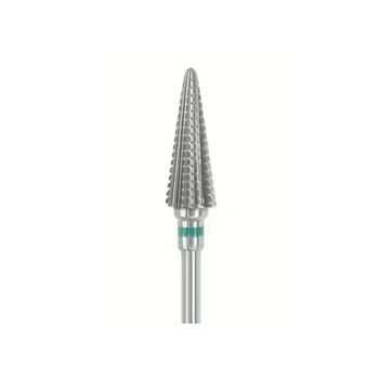 Capăt freză titan verde conic, abraziune puternică, ideal pentru îndepărtarea gelului dur, acrylului și polygelului. Perfect pentru demontare rapidă și eficiență în salon.