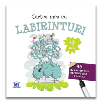 Cartea mea cu labirinturi provoacă toți copiii cu vârstele peste 3 ani să se distreze. Cartea este amuzantă și totodată educativă, ajutându-i pe cei mici să deprindă tainele grafiei și ale jocurilor logice. Imaginile mari și frumos colorate îi vor captiva pe micuți și vor contribui astfel la învățarea prin joc. Carioca lavabilă ajută la completarea labirinturilor și la ștergerea traseelor ori de câte ori se dorește, astfel încât copiii nu vor înceta să se distreze. Scrii şi rezolvi direct pe carte.     Specificații Vârstă: 3+ Pagini: 48 refolosibile Carioca: 1 buc. Mărimi: 20.5 x 20.5 cm Copertă: Necartonată