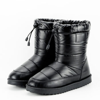 Cizme negre din piele ecologica si material textil impermeabil, de calitate superioara, ajustabile la baza piciorului, capstusite cu blanita foarte calduroasa, talpa antiderapanta, potrivit pentru activitati de iarna