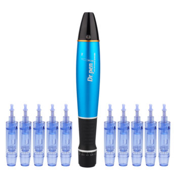 Creion cu Micro-Ace din Titan, Dermapen, Dr. Pen, A1W, pentru Electroporare, impotriva Ridurilor si Imbatranirii, Wireless, 10x Rezerve 12 pini, Adancime 0.25 – 3.00 mm, 5 viteze