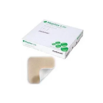 Mepilex Lite Beschreibung CE-Medizinprodukt. Ein dünner, hochgradig anpassungsfähiger Schaumverband, der Wundexsudat aufnimmt und ein feuchtes Wundmilieu aufrechterhält. Die Safetac-Schicht haftet an den Wundrändern und verhindert so das Austreten von Exsudat auf die umliegende Haut. Dadurch wird das Mazerationsrisiko minimiert. Die Safetac-Schicht gewährleistet atraumatische Verbandwechsel. Mepilex Lite kann zugeschnitten werden, um Wunden unterschiedlicher Form und Lage anzupassen. Der Verband besteht aus: • eine Wundkontaktschicht aus weichem Silikon (Safetac) • ein dünnes, saugfähiges Kissen aus Polyurethanschaum • eine atmungsaktive, aber dennoch wasserdichte Außenfolie. Anleitung zur Verwendung Reinigen Sie die Wunde gemäß Standardverfahren. Trocknen Sie die Wundumgebung gründlich ab. Entfernen Sie die Schutzfolien und bringen Sie die Klebeseite auf der Wunde an. Ziehen Sie den Verband während des Anbringens nicht. Für optimale Ergebnisse sollte Mepilex Lite mindestens 2 cm gesunde Haut um den Wundrand herum bedecken. Schneiden Sie das Produkt bei Bedarf zu. Fixieren Sie Mepilex Lite gegebenenfalls mit einem Verband oder auf andere Weise. Mepilex Lite kann je nach Zustand der Wunde und des umliegenden Gewebes sowie nach Anweisung Ihres Arztes bis zu 7 Tage lang auf der Wunde verbleiben. Eine Änderung der Wundversorgung führt häufig zu vermehrtem Wundsekret. Überwachen Sie den Wundzustand sorgfältig und wechseln Sie den Verband häufiger. Eigenschaften • Minimiert Schmerzen und Traumata beim Verbandswechsel. • Bleibt an Ort und Stelle und erleichtert so die Anwendung von Kompressions-, Fixierungs- oder Umhüllungsverbänden. • Fördert den Patientenkomfort; es ist dünn und sehr angenehm zu tragen. • Bei Verwendung üblicherweise angewandter Energiebereiche und Dosen ist eine Entfernung während der Strahlentherapie nicht erforderlich. • Besonders geeignet für die Anwendung unter elastischen Kompressionsverbänden. • Kann zugeschnitten werden, um verschiedenen Wundformen und schwer zu verbindenden Bereichen gerecht zu werden. • Je nach Zustand der Wunde kann sie mehrere Tage lang an Ort und Stelle bleiben. • Kann angehoben und neu positioniert werden, ohne dass die Hafteigenschaften verloren gehen. • Geringes Risiko von Hautreizungen und Allergien. Warnungen Bei einer Infektion wenden Sie sich bitte an Ihren Arzt. Verwenden Sie Mepilex Lite nicht, wenn Sie Substanzen mit Oxidationsmitteln wie Hypochlorit oder Wasserstoffperoxidlösungen verwenden. Verwenden Sie das Produkt nicht, wenn die Verpackung beschädigt ist. Sterilität ist nur bei unbeschädigter Verpackung gewährleistet. Dieses Produkt ist nur zum einmaligen Gebrauch bestimmt. Nicht erneut sterilisieren. Erhaltung Unter 35 °C an einem trockenen Ort lagern. Vor direkter Sonneneinstrahlung schützen. Format Firmeninterncode Abmessungen Anzahl der Teile 284000 6 x 8,5 cm 5 284100 10×10 cm 5 284300 15 x 15 cm 5 284500 20 x 50 cm 4