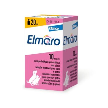 ELMARO 10MG/ML 20 ML – Soluție injectabilă pentru câini și pisici. COMPOZITIE: Substanta activa: 10 mg maropitant (echivalent cu 14,5 mg maropitant citrat monohidrat) SPECII TINTA: Caini si pisici INDICATII: Câini Pentru tratamentul și prevenirea stării de greață indusă de chimioterapie. Pentru prevenirea vărsăturilor, cu excepția celor induse de răul de mișcare. Pentru tratamentul vărsăturilor, în combinație cu alte măsuri de susținere. Pentru prevenirea senzației de greață și vărsăturilor perioperatorii și îmbunătățirea recuperării după anestezia generală după utilizarea morfinei, agonist al receptorului μ-opiacee. Pisici Pentru prevenirea vărsăturilor și reducerea stării de greață, cu excepția celei induse de răul de mișcare. Pentru tratamentul vărsăturilor, în combinație cu alte măsuri de susținere. DOZE SI MOD DE ADMINISTRARE: Pentru administrare subcutanată sau intravenoasă. Produsul medicinal veterinar trebuie injectat o dată pe zi, în doză de 1 mg maropitant/kg greutate corporală (1 ml produs medicinal veterinar/10 kg greutate corporală) timp de până la 5 zile consecutive. Produsul medicinal veterinar trebuie administrat intravenos în bolus, în doză unică, fără amestecarea produsului cu alte lichide. Pentru a preveni vărsăturile, produsul medicinal veterinar trebuie administrat cu mai mult de 1 oră înainte. Durata efectului este de aproximativ 24 de ore și, prin urmare, tratamentul poate fi administrat cu o noapte înainte de administrarea unui agent care poate provoca vărsături, de exemplu, chimioterapie. Deoarece variația farmacocinetică este mare și maropitant se acumulează în organism după administrarea repetată o dată pe zi, doze mai mici decât cele recomandate ar putea fi suficiente la unii indivizi și atunci când se repetă doza.