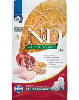 FARMINA N&D Ancestral Grain Dog Hrana uscata pentru catei de talie mica si medie, cu pui si ovaz 2,5 kg