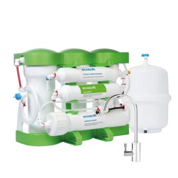 Specificatii: Tip produs: Ecosoft PURE Balance Brand: Ecosoft Metoda de filtrare: osmoza inversa Numar stadii de filtrare: 6 Capacitate membrana: 75 GPD (≈ 280-285 litri/zi) pentru modelul standard Grad de filtrare (porozitate): 0,0001 microni. Include functie de remineralizare (adauga calciu si magneziu). Include rezervor de stocare: Da (volum util în general ~7-8 litri, rezervor total ~12 litri). Materiale: plastic alimentara (BPA-free) pentru rezervor, carcase filtre etc. Dimensiuni sistem (corp filtre): ~ 44 cm (latime) × 31 cm (inaltime) × ~19-20 cm (adancime) pentru versiunea standard. Dimensiuni rezervor stocare: inaltime ~35-40 cm, diametru ~26 cm. Montaj: sub chiuveta (typical), fara necesitate alimentare electrica pentru modelul de baza (fara pompa). Conexiuni: Intrare apa ½″ (unele variante), furtune ¼″ pentru alimentare si conexiuni instalare. Eficienta filtrare: pana la ~99.8% abatere a contaminantilor relevanti (depinde de apa/conditii). Presiune de lucru aprox.:~2-6 bar (variaza in functie de model si daca are pompa booster). Temperatura apei de intrare: ~ +4°C pana la ~+30°C Apa de intrare acceptata: apa de retea, apa de fantana (in conditiile specificate). Interval TDS de operare recomandat: pana la ~500 ppm (pentru modul standard) Duritate max recomandata:: < 30 °dH Pachetul contine: Setul de 5 cartuse (3 prefiltrare si 2 postfiltrare) Membrana osmotica de 0.0001 microni de 280 litri (75 GPD) Bazin de stocare de 12 litri, volum util maxim 8 litri. Robinet modern cromat cu un brat. Piesa de legatura ½”. Furtune flexibile de ¼”. Carcase pentru cartuse. Supapa de sens. Robinet de alimentare Robinet de siguranta Valva diferentiala Restrictor drenaj 2 chei pentru fixarea cartuselor Suport sistem verde Instructiuni de montare in pachet Descriere: Filtru de osmoza inversa Ecosoft PURE Balance Ecosoft Balance este un sistem de osmoza inversa premium conceput pentru purificarea completa a apei potabile, oferind un gust natural, curat si perfect echilibrat datorita remineralizarii cu calciu si magneziu. Cu o eficienta ridicata si o capacitate de 75 GPD (≈285 litri/zi), acest sistem asigura o filtrare rapida si constanta pentru intreaga familie. Sistemul include 6 stadii de filtrare care elimina impuritatile fizice, clorul, metalele grele, bacteriile si alte substante nocive, oferind o apa de o puritate comparabila cu cea a apei de izvor. Etapa finala de remineralizare imbogateste apa cu ioni esentiali de calciu si magneziu, imbunatatind gustul si contribuind la sanatatea oaselor si a sistemului cardiovascular. Specificatii tehnice: Model: Ecosoft Balance RO6 Tehnologie: Osmoza inversa Numar de stadii: 6 Capacitate filtrare: 75 GPD (≈285 litri/zi) Tip cartuse: Sediment, carbon activ, membrana RO, postfiltru carbon, remineralizare Remineralizare: Cu calciu si magneziu naturale Presiune de lucru: 2.8 – 6 bar Rezervor stocare: 8 litri (presurizat) Temperatura apei: +4°C – +30°C Dimensiuni compacte: potrivit pentru montare sub chiuveta Conectare: Rapida, tip push-fit Producator: Ecosoft (Ucraina) Beneficii principale: Apa cristalina si sigura pentru consum direct. Indeparteaza 99.9% din impuritati, clor, nitrati, bacterii si metale grele. Remineralizare naturala cu calciu si magneziu pentru gust echilibrat. Eficienta energetica ridicata – consum redus de apa. Instalare usoara si intretinere minima. Ideal pentru familii, birouri si utilizare zilnica. Recomandare: Perfect pentru cei care doresc apa pura, sanatoasa si echilibrata direct de la robinet, fara necesitatea apei imbuteliate. Ecosoft Balance ofera combinatia ideala intre performanta, durabilitate si calitate premium.