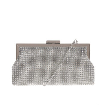 Geanta plic eleganta cu strasuri argintii si bareta din lant