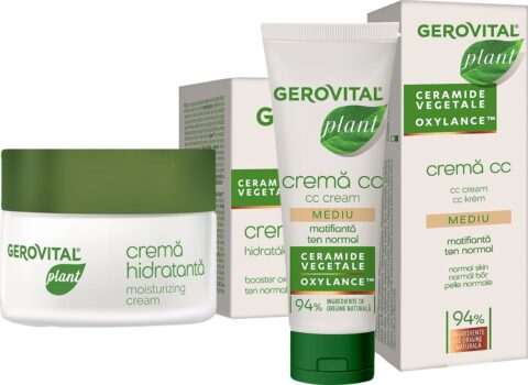 Pachetul conține: 1 x Gerovital Plant Cremă Hidratantă 50ml 1 x Gerovital Plant-Cremă CC 30ml Proprietăți: Gerovital Plant Cremă Hidratantă : Crema Hidratantă Gerovital Plant Poliplant Microbiom Protect este special concepută pentru menținerea unui nivel optim de hidratare a tenurilor normale și mixte. Se folosește zilnic pentru creșterea consumului de oxigen la nivelul celulelor, îmbunătățirea hidratării și diminuarea reacțiilor alergice. Gerovital Plant-Cremă CC : Gerovital Plant Crema CC Matifiantă este o cremă “Color Control” care conferă tenului un aspect natural, într-o singură formulă, prin combinarea