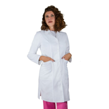 Halat lung dama, cu maneca lunga si guler cu rever, elegant si versatil, potrivit pentru domeniul medical sau saloane de infrumusetare.
