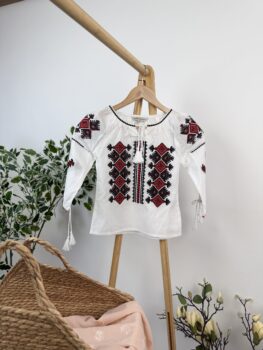 Ie tradițională copii Ie tradițională pentru fetițe realizată din 100% bumbac de calitate, perfectă pentru evenimente speciale, serbări școlare, sărbători tradiționale sau ținute de zi cu inspirație românească. Confecționată din pânză albă naturală, această ie oferă confort, respirabilitate și libertate de mișcare, fiind ideală pentru pielea sensibilă a copiilor. Modelul este brodat la mașină cu broderie tradițională, atent realizată pentru a evidenția motivele inspirate din portul popular românesc. Detaliile brodate adaugă eleganță și autenticitate, transformând această ie într-o piesă vestimentară deosebită pentru orice mică prințesă. Materialul din bumbac 100% asigură durabilitate și confort pe tot parcursul zilei, iar croiala lejeră permite purtarea atât la evenimente folclorice, cât și în ținute casual moderne. Mod de fabricare: produsul este brodat la mașină. Livrarea durează între 2 și 5 zile lucrătoare în fucție de volumul comenzilor și disponibilitate. Dacă timpul de livrare se mărește, veți fi anunțat telefonic sau notificat prin SMS/Whatsapp. Spălare: Recomandăm spălarea la temperaturi scăzute, 20-30° la mașina de spălat sau de preferat, spălare manuală. Se calcă în mod obișnuit la nivel mediu. Menționăm că pozele de prezentare nu sunt editate, încercăm să redăm nuanțele/culorile cât mai reale, folosindu-ne de lumină naturală.