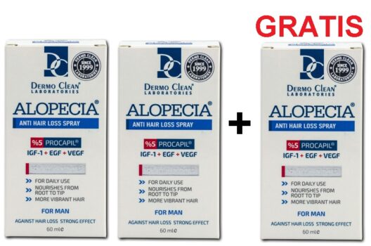 Alopecia, IGF, Spray pentru cresterea parului la barbati cu Procapil 5%, 60ML Sprayul pentru caderea parului de la Alopecia, ajută la prevenirea căderii părului la femei. Întărește rădăcinile părului datorită formulei sale special concepute pentru a-ți hrăni și repara părul de la rădăcini până la vârfuri. Această formulă ofera vitalitate si volum parului, ajută la creșterea elasticității părului, îmbunătățește nivelul de hidratare și conferă un aspect mătăsos. Cauzele caderea parului – cele mai comune cauze: Factori genetici, precum alopecia androgenetică Dezechilibre hormonale Stresul excesiv Dietă săracă în nutrienți esențiali Afecțiuni medicale, cum ar fi dermatita seboreică sau afecțiunile tiroidiene Utilizarea excesivă a produselor de styling Varsta Ce este IGF-1? IGF este unul dintre ingredientele active care are un rol important în prevenirea și stoparea căderii părului. IGF-1 , cunoscut și sub denumirea de factor de creștere asemănător insulinei 1, este o proteină esențială care reglează efectele hormonilor de creștere în organismul nostru. Este vital pentru dezvoltarea părului si este produs în mod natural în foliculii de păr ai corpului nostru. În corpul uman, factorul de creștere IGF este produs în mod natural în ficat, dar la unii oameni producția acestuia poate fi insuficientă. Această deficiență poate, în timp, să conducă la căderea părului. Cercetările au arătat că acest factor de creștere este un produs natural al celulelor de păr, iar aceasta descoperire sugerează că IGF-1 promovează creșterea părului prin stimularea proliferării keratinocitelor în foliculii de păr. Factorul de creștere asemănător insulinei-1 este un regulator fiziologic al ciclului de creștere a părului. Prin aplicarea directa pe radacina parului a sprayului ce are in compozitia sa factorii de creștere, precum IGF, procapil și saw palmetto, c rește fluxul de sânge în rădăcina părului, stimuleaza creșterea părului și reduce pierderea acestuia. La persoanele cu structură fină a părului, IGF îngroașă firele de păr și le reda stralucirea. Care sunt beneficiile IGF? 1. IGF-1 acționează și ca un factor de creștere pentru păr, fiind produs direct în foliculii piloși. 2. Această descoperire sugerează că IGF-1 promovează creșterea părului prin stimularea proliferării keratinocitelor în foliculii de păr. 3. Factorul de creștere asemănător insulinei-1 este un regulator fiziologic al ciclului de creștere a părului. 4. Probabil cel mai studiat factor de creștere asemănător insulinei-1, are un rol important în controlul ciclului părului, precum și în diferențierea firelor de păr în timpul dezvoltării foliculilor de păr. 5. S-a raportat că IGF-1 susține creșterea foliculilor de păr prin reglarea proliferării celulare și reglează ciclul de creștere a părului. 6. În timp ce IGF-1 ajută la menținerea fazei de creștere și creștere a părului, poate împiedica intrarea foliculilor de păr în perioada de cădere. 7. Aplicând factori de creștere precum IGF și Procapil la rădăcina părului, accelerează fluxul sanguin al rădăcinii părului, ajută la creșterea părului și minimizează căderea părului. Ingrediente: IGF, EGF și VEGF sunt factori de creștere esențiali în formulările avansate ale serurilor pentru păr, cum este cel destinat combaterii alopeciei. IGF sprijină vitalitatea foliculilor. EGF accelerează regenerarea și creșterea părului. VEGF îmbunătățește circulația la nivelul scalpului, oferind părului nutrienții necesari pentru a crește sănătos și puternic. Împreună cu Procapil, aceste ingrediente active luptă eficient împotriva căderii părului, revitalizează și fortifică părul de la rădăcină până la vârfuri. Procapil 5% este un ingredient activ utilizat în tratamentele pentru păr, destinat combaterii căderii acestuia și stimulării creșterii. Conține un amestec de Biotinoyl Tripeptide-1 pentru întărirea foliculilor, Apigenin care îmbunătățește circulația la nivelul scalpului, și acid oleanolic, ce inhibă DHT-ul, un hormon legat de căderea părului. Este recunoscut pentru capacitatea sa de a întări foliculii de păr și de a încetini căderea acestuia, contribuind, astfel, la mentinerea unui scalp sanatos și o creștere mai puternică a părului. Concentrația de 5% asigură o formulă eficace pentru sănătatea și revitalizarea părului. Saw Palmetto: Saw Palmetto contribuie la reducerea căderii părului prin inhibarea formării DHT, un hormon care poate cauza subțierea și slăbirea părului. Pantenol (Provitamina B5): Pantenolul hidratează părul, conferindu-i elasticitate și strălucire, și ajută la repararea vârfurilor despicate. Keratina hidrolizată din compozitie repară și reconstruiește structura părului deteriorat, oferindu-i rezistență și netezime pentru un aspect sănătos. Proteine de grâu hidrolizate pătrund în cuticula părului pentru a oferi hidratare și volum, protejând totodată părul de agenții externi dăunători. Uleiul de rozmarin stimuleaza creșterea părului si previne căderea acestuia. Reduce mătreața și intareste firul de păr. Mod de folosire: Se aplica de doua ori pe zi, dimineata si seara, prin pulverizare de 5 ori pe zona afectata de caderea parului. Masați zona pulverizată cu vârful degetelor. Nu spălați părul după aplicare, pentru a permite produsului să acționeze în profunzime. Prin pulverizare se permite o distribuție uniformă a ingredientelor active pe scalp și păr, ceea ce poate fi mai convenabil pentru cei care doresc un tratament rapid și eficient pe parcursul zilei. Pentru rezultate optime, se recomanda utilizarea in combinatie cu samponul din gama Alopecia, care curata scalpul si pregateste parul pentru absorbtia ingredientelor active. Precautii: A nu se lăsa la îndemâna copiilor. Evitati contactul cu