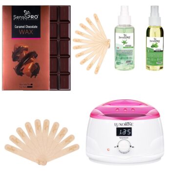 Kit Epilare Ceara Chocolate iTouch Premium, SensoPRO Milano este kitul perfect pentru o sedinta de epilare rapida si eficienta. Chocolate iTouch Premium este kitul de epilare potrivit atat pentru femei cat si pentru barbati. Acum, toate produsele de care ai nevoie sunt in acest kit unic: – 1 buc x Incalzitor Ceara Traditionala PRO WAX REVOLUTION – LUXORISE – nuanta in functie de stocul disponibil – 1 buc x Ceara Epilat Elastica SensoPRO Milano Caramel Chocolate, 400g – 1 buc x Lotiune inainte de Aloe, SensoPRO Milano- aroma in functie de stocul disponibil – 1 buc x Ulei dupa Epilare Menthol, 100ml, SensoPRO Milano- aroma in functie de stocul disponibil – 10 buc x Spatula mare ceara, SensoPRO Milano – 10 buc x Spatula mica ceara, SensoPRO Milano Respectati intotdeauna modul de utilizare. Mod de utilizare: Epilare cu ceara: 1. Asaza incalzitorul pe o suprafata dreapta si rezistenta la temperatura; 2. Asigura-te ca rotita incalzitorului este pe pozitia OFF, apoi conecteaza incalzitorul la priza; 3. Toarna cantitatea de ceara dorita in recipientul incalzitorului si pune capacul; 4. Seteaza incalzitorul la temperatura maxima cu ajutorul rotitei si încalzeste ceara pana devine complet lichida, apoi pastreaz-o constant la o temperatura medie. Amesteca din cand in cand pentru a verifica soliditatea, ceara este gata de aplicare cand devine cremoasa (supravegheati constant ceara in momentul incalzirii). 5. Asigura-te ca temperatura cerii este confortabila pentru pielea ta. Poti face un test pe o mica portiune a pielii pentru a evita arsurile. 6. Incepe prin curatarea pielii cu Lotiunea înainte de Epilare SensoPRO Milano . Asigura-te ca pielea este complet uscata inainte de aplicarea cerii. 7. Foloseste o spatula pentru a aplica ceara in directia cresterii firelor de par, asteapta cateva secunde pentru a se întari ceara si apoi trage rapid in sens invers cresterii firelor de par. 8. Aplica Ulei dupa Epilare pentru a indeparta reziduurile de ceara si pentru a reduce roseata si iritatiile pielii. Evita expunerea la soare sau la bai fierbinti timp de cateva ore dupa epilare pentru a preveni iritatiile suplimentare. 9. Dupa utilizare, deconecteaza incalzitorul de la priza si curata-l pentru a indeparta resturile de ceara cazute pe acesta. Ceara si parafina se folosesc exclusiv pentru uz extern. A nu se aplica pe piele sensibila, afectata de leziuni sau pe zone sensibile. A nu se lasa la indemana copiilor . A se evita supraincalzirea. Se recomanda incalzirea precauta. ATENTIE : foarte fierbinte, poate cauza arsuri!
