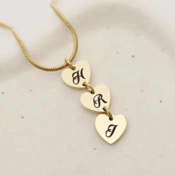 Lantisor Trei Inimi – Personalizate cu Initiale – Otel Inoxidabil 316L