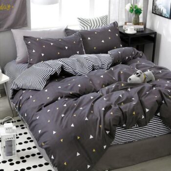 Lenjerie pat dublu cu Elastic, bumbac satinat, Gri, forme geometrice