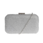 Geanta plic eleganta cu strasuri argintii si bareta din lant