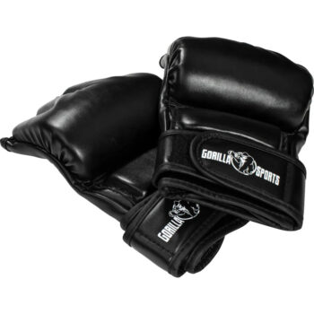 Mănuși de box negre – Lovituri cu protecție precisăMMA, sau Arte Marțiale Mixte, este unul dintre cele mai dificile sporturi din lume. Este un sport de luptă solicitant și incitant care combină lovituri de picior și pumni, necesitând mult din partea practicanților săi, chiar și în timpul antrenamentului. Din acest motiv, sportivii MMA au așteptări mari de la echipamentul lor, în special de la mănuși. Aici intervin mănușile de box MMA de la Gorilla Sports.Mănuși de box MMA negre în detaliu:Mărime: Mărime universală (L-XL)Material: Piele sinteticăGrosime: Aprox. 3 cmMănuși de box cu jumătate de degetPotrivite pentru numeroase arte marțialeCe altceva ar trebui să știți despre aceste mănuși de box MMA?Ca un partener de antrenament bun și de încredere, aceste mănuși nu vă vor dezamăgi niciodată. Designul este optimizat pentru mobilitate maximă, cu cea mai bună protecție posibilă. Acest lucru este evident în apărătoarea integrată pentru încheietura mâinii, care previne îndoirea încheieturilor mâinii – chiar și în timpul loviturilor puternice. Bandajul extra-lung cu închidere cu velcro pe partea inferioară ajută, de asemenea, la fixarea încheieturii mâinii. Echipat astfel, te poți concentra pe deplin asupra antrenamentului și poți lucra cu forță și încredere deplină.