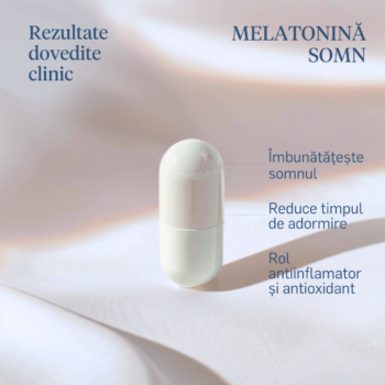Melatonina este un hormon responsabil pentru calitatea somnului. El are și beneficii secundare, precum un efect antioxidant și antiinflamator care întărește sistemul imunitar și poate susține sănătatea inimii și a creierului. Produsul este livrat sub formă de capsule, ambalate în pliculețe cu doză zilnică.