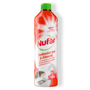Nufăr Desfundat Țevi și Chiuvete este o soluţie care desfundă ţevile de scurgere şi chiuvetele din gospodărie (baie şi bucătărie) contribuind în acelaşi timp la eliminarea mirosurilor neplăcute din ţevi. Cu Nufăr – Desfundat Țevi şi Chiuvete rezolvaţi rapid (în doar 10 minute) problema ţevilor înfundate, vă scapă de neplăcerile cauzate de scurgerile înfundate şi de mirosurile neplăcute. Este un produs care nu trebuie să lipsească din nicio gospodărie, dimensiunile reduse ale flaconului permi…