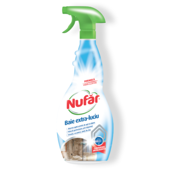 Nufăr Baie Extra Luciu este alegerea ideală pentru băile moderne, datorită formulei sale inovatoare, fără clătire, ce curăță și oferă strălucire instantanee. Oțetul din compoziție dizolvă eficient depunerile de săpun și picăturile uscate de apă, în timp ce ingredientul activ Aristocare™ Smart formează o peliculă protectoare care facilitează scurgerea apei, previne petele și încetinește formarea calcarului. Recomandat în special pentru ștergerea cabinelor de duș și a pereților din sticlă, produsul r…