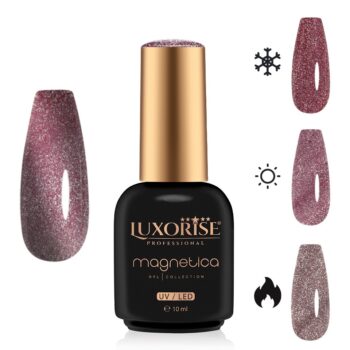 Irizatii irezistibile cu efecte intense de rafinament si stralucire! Oja Semipermanenta LUXORISE MAGNETICA – ThermoCharm, Garnet Glitz 10ml este invitatia perfecta la manichiuri creative, fascinante, usor de realizat chiar si de catre incepatori. Magnetica este colectia de oja semipermanenta ce iti ofera un nail art ultra rapid pe unghii in reflexii fascinante. Datorita formulei speciale, poti crea cu usurinta efecte extravagante si unice pe unghii. Avantaje: ✔️ Formula revolutionara ✔️ Efecte diferite in functie de pozitionarea magnetului ✔️ Aderenta excelenta ✔️ Vascozitate medie ✔️ Nuante pigmentate ✔️ Aplicare usoara ✔️ Rezistenta indelungata ✔️ Produs recomandat de profesionisti Aplicare & Recomandari: 1. Pregatirea unghiilor – Impingeti si stilizati cuticulele – Matuiti suprafata unghiilor cu o pila buffer – Curatati excesul de praf cu o perie de unghii – Aplicati Nail Prep sau Primer si lasati sa se usuce – Aplicati Base Coat si polimerizati 30-60s in lampa LED sau 120s in lampa UV 2. Aplicare oja semipermanenta MAGNETICA LUXORISE – Aplicati un strat subtire de oja semipermanenta – Folositi Magnetul pentru realizarea diverselor efecte pe unghii – Polimerizati in lampa LED 60s sau in lampa UV 120s 3. Finalizare manichiura / pedichiura – Aplicati Top Coat si polimerizati 60s in lampa LED sau 120s in lampa UV – Hidratati cu ulei de cuticule Nuanta: ThermoCharm, Garnet Glitz Cantitate: 10ml Colectie: Magnetica *Pentru realizarea efectelor pe unghii se foloseste un magnet de unghii.