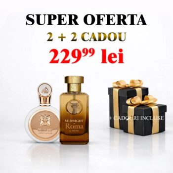 Pachet Lattafa Fakhar Woman+ Midnight In Roma by Patric + 2 parfumuri cadou Un pachet atent ales pentru cei care apreciază arome elegante, moderne și ușor recognoscibile , într-o combinație echilibrată de rafinament și senzualitate. Două parfumuri premium, completate de două parfumuri cadou , pentru varietate și valoare maximă. 🎁 Ce conține pachetul Conform experiențelor clienților, Fakhar Woman este asemănător cu L`Interdit de la Givenchy. Ingrediente Note de vârf : bergamotă, crin, rodie Note de mijloc : trandafir, iasomie, caprifoi, tuberoză, bujor, gardenie Note de bază : vanilie, lemn de santal, ambroxan, mosc alb Descoperă farmecul acestui captivant parfum, Cute Lady by Asten! Cute Lady de la Asten este un parfum fermecător care sporește feminitatea și dulceața femeii moderne. Notele sale proaspete și jucăușe evocă o imagine radiantă plină de energie. Bucurați-vă de fructele sale suculente, florile moi și o notă de senzualitate de durată. Midnight In Roma by Patric Vanilia Bourbon, una dintre cele mai scumpe esențe din lumea modernă a parfumurilor. Midnigt In Roma, constă dintr-un amestec de 3 flori diferite de iasomie, Este un simbol al armoniei unice a acestor ingrediente. Puterea boabelor de piper roz rece și o doză mare de note lemnoase, a daugă o notă feminină și modernă parfumului creat sub influența couture-ului. Inspirat din Donna Born in Roma Nota de varf: Jasmine Trio Nota de inimă: Acord de chihlimbar lemons Nota de bază: vanilie de Burbon 2 parfumuri CADOU – ideale pentru a descoperi arome noi sau pentru a fi oferite mai departe 👉 Total: 4 parfumuri într-un pachet avantajos