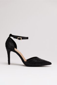 Pantofi de ocazie negri cu toc subtire si aplicatii stralucitoare. Au varf ascutit, decupaje pe lateral si bareta reglabila la glezna. Pantofi eleganti Varf ascutit Deupaje pe laterale Toc subtire Inaltime toc: 10 cm *Va rugam verificati eticheta produsului inainte de curatare! *Va rugam sa retineti ca o usoara discrepanta de culoare ar trebui sa fie acceptabila datorita luminii si luminozitatii ecranului. *Va rugam verificati ghidul de marimi, in cm, pentru a alege corect marimea.