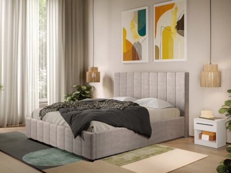 Pat Tapitat cu somiera fixa – Stofa Bej – Dallas Pat Tapitat cu somiera fixa – Stofa Bej – Dallas Adaugă un plus de eleganță și funcționalitate dormitorului tău. Prevăzut cu somieră fixa pentru saltea. Confortul întâlnește utilitatea într-un design contemporan, creat pentru a transforma rutina zilnică într-o experiență relaxantă și organizată. Fabricat din materiale de calitate superioară, cadrul solid al patului este completat de o tăblie înaltă, ideală pentru momentele de relaxare. Beneficii principale: