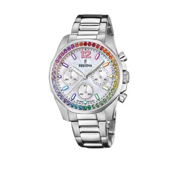 Festina este un brand internațional prezent în peste 90 de țări. Aceștia au sediul în Barcelona, însă au centre de producție și în Elveția și alte țări europene. Devotamentul pentru calitatea superioară și atenția oferită clienților au transformat Festina într-un reper internațional în lumea ceasurilor de azi. Ceasul Festina F20606/2 pentru femei, parte din Colecția Rainbow, reprezintă o bijuterie de ceasornicărie care combină cu succes eleganța cu funcționalitatea, fiind ideal pentru orice ocazie specială. Zirconiile colorate și designul elegant transformă acest ceas într-o bijuterie deosebită, perfectă pentru a completa orice ținută elegantă.