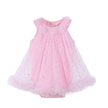 O fetiță își dorește să fie centrul atenției, să semene cu o prințesă și să străluceacă.Rochita Fetite Emm Roz este o alegere excelentă pentru o petrecere pentru că va atrage, fără doar și poate, privirile tuturor invitaților ei. Rochița are un body din bumbac, material plăcut la atingere, ce lasă pielea celei mici să respire, fără a se supraîncălzi. Creată cu mare atenție la detalii, din apreciere pentru delicatețea micuțelor prințese, Rochita Fetite Emm Roz este fără mâneci,  iar fusta amplă este acoperită integral din doua randuri de voal roz,conturate in partea de jos cu cate un volanas si are aplicate o multime de buline sclipitoare ce imita perlele.La spate se închide cu trei capse.Atractia rochitei  este un rand de trandafirasi roz ce contureaza decolteul acesteia. Aceasta nu face decât să adauge rafinament și eleganță norocoasei care o poartă.