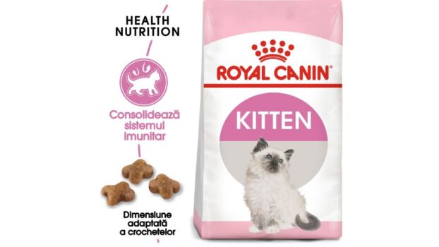 Royal Canin Kitten hrana uscata pisica junior – 10 kg Susține sistemul imunitar Creșterea este o etapă esențială în viața pisicii dumneavoastră: este vremea marilor schimbări, descoperiri și a noilor experiențe. În aceasta etapă importantă, sistemul imunitar al puiului de pisică se dezvoltă treptat. Kitten contribuie la susținerea sistemului imunitar natural al puiului în a doua etapă de creștere în special datorită complexului patentat* de antioxidanți care include vitamina E. *Franţa, patent Nr. EP1146870. Siguranță digestivă Toleranță digestivă ridicată datorită proteinelor ușor asimilabile (L.I.P.*) și datorită prebioticelor (inclusiv FOS). *Proteină selecționată datorită gradului său ridicat de asimilare. Dezvoltare armonioasă Conținut adaptat de proteine, vitamine și minerale inclusiv vitamina D si calciu. Conținut ridicat de energie, potrivit acestei perioade de creștere intensă. Proteine cu grad ridicat de asimilare Proteine selecționate pentru nivelul ridicat de digestibilitate de peste 90% (Royal Canin). COMPOZIŢIE proteină deshidratată de pasăre, orez, izolat proteic vegetal*, grăsimi animale, făină de porumb, proteine animale hidrolizate, făină de grâu, gluten de porumb, drojdii, pulpă de sfeclă, fibre vegetale, ulei de peşte, ulei de soia, minerale, Fructo-Oligo-Zaharide (0,38%) (FOS), tegumente şi seminţe de Psyllium, drojdie hidrolizată(sursă de Manan-Oligo-Zaharide), extract de drojdii (sursă de beta-glucani), extract de gălbenele (sursă de luteină). ADITIVI (per kg): Aditivi nutriţionali: Vitamina A: 21500UI, Vitamina D3: 800UI, Vitamina E: 600mg, E1 (Fier): 32,3mg, E2 (Iod): 3,2mg, E4 (Cupru): 9,9mg, E5 (Mangan): 42mg, E6 (Zinc): 116,5mg, E8 (Seleniu): 0,05mg- Aditivi tehnologici: Clinoptilolit de origine sedimentară: 10g- Conservanţi- Antioxidanţi. CONSTITUENŢI ANALITICI: Proteine: 36%- Grăsimi: 18%- Cenuşă: 7,7%- Celuloză brută: 2,3%- Calciu: 1,2%. *L.I.P.: proteină selecţionată datorită gradului său ridicat de asimilare. Important: Royal Canin Kitten hrana uscata pisica junior – 10 kg – intra in categoria farmacie veterinara. Consultati medicul veterinar www.mobile-vet.ro pentru stabilirea diagnosticului, prescrierea medicatiei sau a dietei in functie de nevoile specifice animalului dumneavoastra.