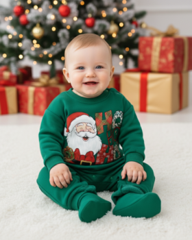 Pregătește-l pe micuțul tău pentru cele mai vesele sărbători cu această adorabilă Salopeta Verde Baieti de Craciun! Este ținuta perfectă pentru a intra în spiritul festiv, ideală pentru dimineața de Crăciun, vizite la familie sau pentru o ședință foto memorabilă lângă brad. Tematică Veselă: Imprimeu mare și colorat cu Moș Crăciun și textul „HO HO”. Culoare Festivă: Un verde intens, specific Crăciunului, care iese frumos în evidență. Confortabil și Călduros: Ideală pentru sezonul rece, confecționată din material moale, prietenos cu pielea. Ușor de Îmbrăcat: Prevăzută cu sistem de închidere cu capse pentru o utilizare facilă. Este ținuta perfectă pentru a surprinde zâmbetul magic și bucuria primului Crăciun al băiețelului tău!