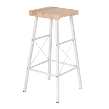 Set 2 scaune tip taburet pentru bar si bucatarie. Setul este confectionat din schelet metalic vopsit electrostatic alb cu blat din lemn.Se livreaza neasamblat, impreuna cu schita si accesorii montaj.Asamblarea se face de catre beneficiar. Curatarea se face cu o carpa alba moale si produse de curatenie neabrazive.Dimensiuni:Scaun: L 30, l 30, h 70 cm, capacitate maxima scaun 100 kg
