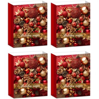 Set 4 Pungi Cadou de Craciun, 41.5x30x12 cm, Modele Premium cu Tematica de Sarbatori, pentru Cadouri de Craciun si Mos Nicolae Adauga un strop de magie fiecarui cadou cu Setul de 4 Pungi Cadou de Craciun, create special pentru a transforma daruirea intr-o experienta plina de emotie si rafinament. Fiecare punga este decorata cu detalii tematice de sarbatori, inspirate din atmosfera calda si festiva a Craciunului. 🎄 Caracteristici principale