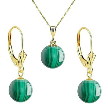 Setul este compus dintr-un colier cu pandantiv din aur si o pereche de cercei din aur cu pietre semipretioase naturale de malachit, rotunde, de 10 mm. Un pandantiv din aur galben de 14 karate cu o piatra semipretioasa naturala de malachit, marimea…