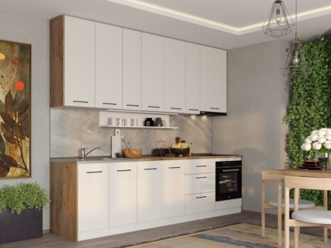Set Mobila Bucatarie alba cu lemn Echo – 3 – 283.2 cm