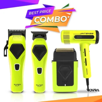 Set ROVRA – SUPER CUT – Masina de tuns + Masina de contur + Masina de ras + Uscator de par INTENSE – Verde
