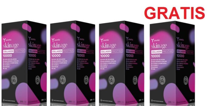 Skinage Colagen Prestige, 500ML 3+ 1 GRATIS Supliment alimentar lichid ce contine colagen de pește hidrolizat. Contine 10.000 mg de colagen hidrolizat, 100 mg de acid hialuronic, 100 mg de vitamina C, vitamine din complexul B , mangan si zinc. Beneficii colagen Prestige: redă strălucirea și elasticitatea pielii ajută la reducerea ridurilor mentine un aspect sanatos si luminos al pielii si fetei redă strălucirea și rezistența părului și a unghiilor păstrează oasele și țesuturile conjunctive din organism întărește oasele, articulațiile, părul și unghiile susține producția și sinteza naturală de colagen pentru îngrijirea generală a corpului, a pielii și a feței Descriere: O combinație de colagen, acid hialuronic și complex de vitamina B ce hrănește pielea din interior iar vitamina C contribuie la formarea normală de colagen pentru mentinerea funcției normale a pielii, dar si la protejarea celulelor impotriva stresului oxidativ, reducerea ridurilor si redarea aspectului tineresc al pielii. Odată cu îmbătrânirea, capacitatea organismului de a produce colagen si acid hialuronic scade, astfel încât pielea începe să-și piardă elasticitatea si supletea, ceea ce duce la apariția ridurilor. Colagenul hidrolizat îmbunătățește elasticitatea și fermitatea pielii și reduce vizibilitatea ridurilor. Este cea mai comună proteină din corpul nostru. Contribuie la formarea pielii, părului și a țesutului conjunctiv. Asigura fermitate pielii si leaga cantitati mari de apa. După vârsta de 25 de ani, sinteza colagenului scade cu 1,5% anual ceea ce duce la aparitia ridurilor, o piele uscată, păr fragil și tern. Acidul hialuronic leaga si absoarbe apa, hraneste si hidrateaza colagenul. 1 g de acid hialuronic = 6 litri de apă Zincul leaga si absoarbe apa, hraneste si hidrateaza colagenul. 1 g de acid hialuronic = 6 litri de apă Complexul de vitamine B Vitamina B2 protejeaza pielea. Vitamina B3 ajuta pielea uscata si inflamata. Vitamina B5 hidratează pielea și ajută la prevenirea diferitelor afectiuni ale pielii. Biotina previne descuamarea pielii. Manganul contribuie la la protejarea celulelor împotriva stresului oxidativ si la formarea normală a țesutului conjunctiv. În timpul îmbătrânirii, fibrele de colagen încep să se separe, iar interstițiile umplute cu acid hialuronic se micșorează și se golesc . Aportul de colagen Prestige asigură colagen suplimentar și acid hialuronic în organism. Este dovedit clinic că aportul de 10 grame de colagen marin hidrolizat cu Naticol timp de șase săptămâni reduce aspectul ridurilor și îmbunătățește elasticitatea pielii. Naticol colagen hidrolizat: Conține o proporție mare de aminoacizi esențiali S-a dovedit a avea efect asupra procesului anti-îmbătrânire Crește etanșeitatea și elasticitatea pielii Încurajează sinteza naturală a colagenului în fibroblasti. Vitamina C este necesară pentru sinteza colagenului, oferă energie celulelor si protejează pielea împotriva daunelor oxidative. Colagenul sub formă lichidă asigură o absorbție rapidă și o eficiență mai mare, ceea ce contribuie la frumusețea pielii pe termen lung. Mod de administrare: A se lua cate 50 ml o dată pe zi. Ingrediente: apa purificata, colagen marin hidrolizat (peste), indulcitori: fructoza, sucroza, corector de aciditate: acid citric monohidrat, acid L-ascorbic, potentiator de aroma: fructe de padure, hialuronat de sodiu, conservant: sorbat de potasiu, gluconat de zinc, complex de vitamina B (nicotinamida, D-pantotenat de calciu, riboflavina, clorhidrat de piridoxina, clorhidrat de tiamina, acid pterollmonoglutamic, D-biotina, cianocobalamina); gliconat de mangan, colorant: cochineal. Contine in dozele recomandate: 50ml % * NRV Colagen 10 g – Acid hialuronic 100 mg – Vitamina C 100 mg 125 Vitamina B1 1,1 mg 100 Vitamina B2 1,4 mg 100 Vitamina B6 1,4 mg 100 Vitamina B12 25 µg 100 Acid folic 200 µg 100 Biotina 50 µg 100 Acid pantotenic 6 mg 100 Niacina 16 mg NE 100 Zinc 10 mg 100 Mangan 2 mg 100 Note si depozitare: A nu se lăsa la îndemâna copiilor mici. Doza zilnică recomandată nu trebuie depășită. Suplimentul alimentar nu este un înlocuitor sau un substitut pentru o dietă echilibrată. O dietă echilibrată și variată și un mod de viață sănătos sunt importante pentru sănătate. Nu se recomanda femeilor insarcinate sau care alapteaza. A se păstra sub 25 ° C într-un loc uscat. Cantitate: 500 ml