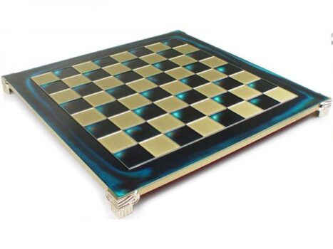Aceasta frumoasa tabla de sah de la Manopoulos este facuta din bronz cu alama, avand patratele inchise la culoare vopsite intr-un rosu albastru multicolor, intreaga tabla fiind lacuita pentru protectie Dimensiuni tabla : 44 x 44 cm Patrat de joc 45 mm Recomandata…
