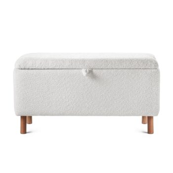 Acest taburet elegant cu ladă de depozitare este perfect pentru a adăuga un plus de stil și funcționalitate oricărei încăperi. Acoperit cu stofă tip bucle, cu o textură rafinată și confortabilă, taburetul oferă o soluție de depozitare discretă. Picioarele înalte adaugă un aer modern și îl fac ușor de integrat în orice decor. Dimensiuni: 100 x 40 x 52 cm Ladă depozitare 90 x 33 x 28 cm Picior cilindric natur 14 cm Capac cu balama extensibilă metalică Materiale Produs: Spumă poliuretanică (burete), PFL Tapițerie Anthology. Materialul tapițeriei este certificat OEKO-TEX® Garanție: 24 Luni Montarea Produsului: Produsul va veni parțial asamblat – doar picioarele necesită asamblare. Instrucțiuni de îngrijire: Stergeți cu o cârpă moale și ușor umezită. Info Colet: Produsul conține 1 colet Detalii țesătură Anthology Tip țesătură: Bouclé Compoziție: 100% Poliester Densitate: 530 g/m² ± 5% Cicluri Martindale: >100 000 Rezistență la scămoșare: 4 Rezistența culorii la lumină: >5 Mai multe detalii despre materiale și țesături puteți citi aici. *Imaginile produselor prezentate pe site sunt cu titlu de prezentare și pot diferi în orice mod (culoare, aspect etc.) de imaginile produselor livrate, acestea putând prezenta abateri minore de la pozele și descrierile prezentate pe site.