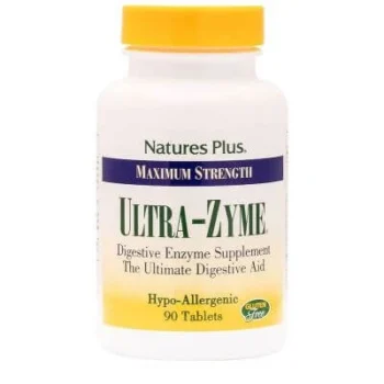 ULTRA-ZYME Descrizione Integratore alimentare. Aiuta il sistema digerente. ingredienti Pancreatina 4x (concentrazione quadrupla) contenente: amilasi, proteasi (tripsina e chimotripsina), lipasi (lipasi pancreatica); acido glutammico, bile bovina, bromelina 1:10 (da ananas), pepsina NF (1:10.000), papaina (da papaya), cellulasi, Lactobacillus acidophilus, Lactobacillus bulgaricus, Bifidobacterium bifidum, betaina cloridrato, lattasi, idrossipropilmetilcellulosa, fosfato bicalcico, acido stearico, cellulosa microcristallina, silice, sali di magnesio degli acidi grassi, prezzemolo, foglie di rosmarino, radice di zenzero, semi di finocchio, foglie di menta piperita e gommalacca. Senza glutine e senza lattosio . Caratteristiche nutrizionali valori medi per 2 compresse Pancreatina 4x che fornisce: – amilasi – protea – lipasi 325 mg 32.500 unità USP 32.500 unità USP 2.600 unità USP acido glutammico 200 mg Bile bovina 120 mg Bromelina 100 mg Pepsina NF 65 mg Papaina 65 mg cellulasi 20 mg Lactobacillus acidophilus, bulgaricus, bifidobacterium bifidum (2,125 miliardi di CFU*) 17 mg Cloridrato di betaina 5 mg mg Lattasi 5 mg Come usare Si consiglia di assumere due compresse una volta al giorno. avvertimenti Questo prodotto non è inteso come sostituto di una dieta varia ed equilibrata e deve essere utilizzato nell’ambito di uno stile di vita sano. Non superare la dose giornaliera raccomandata. Tenere fuori dalla portata dei bambini di età inferiore a 3 anni. Questo prodotto è destinato esclusivamente agli adulti. Non adatto a bambini di età inferiore a 12 anni, salvo diversa prescrizione medica. In caso di dolore intestinale persistente, interrompere l’uso e consultare un medico. Conservazione Conservare ben chiuso, in un luogo fresco e asciutto. Formato Flacone contenente 90 compresse. Codice 4452